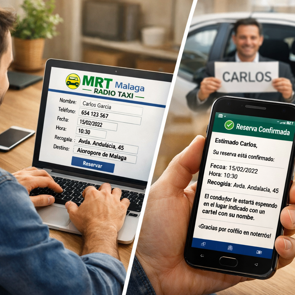 Descubre cómo reservar tu taxi privado desde y hacia el aeropuerto o estación de Málaga en pocos pasos, con total transparencia y comodidad.